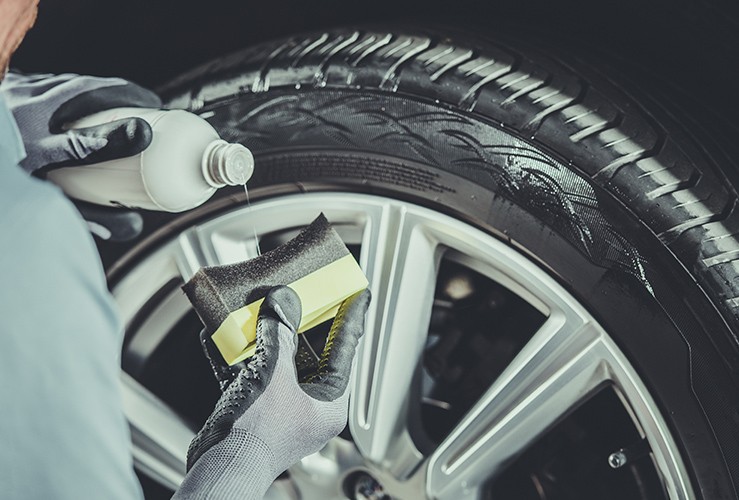 The final step is to add a dressing product to your tyres. This will considerably improve their appearance compared to before and help protect them from dirt. Be sure to clean the area between the rim and the tyre—this often gets missed out.
