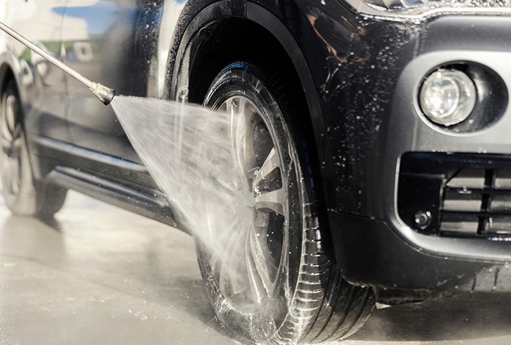 Begin the cleaning process by spraying the pressure washer on the alloys, wheel components, and tyres to remove excess dirt and grime. This will make life much easier later on.