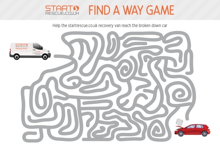 Here at startrescue.co.uk our vans are spot-on when it comes to finding a customer in a broken down vehicle. But this time, faced with a maze, one of our vans needs a little help to find its way. Can you help direct the van through the tangled maze? There are several routes – can you spot them?