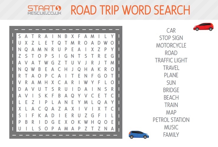 How many of these words can you spot in the jumble of letters? And how many of these things have you seen on your road trip? This fun word search is sure to keep the kids happy for ages.
