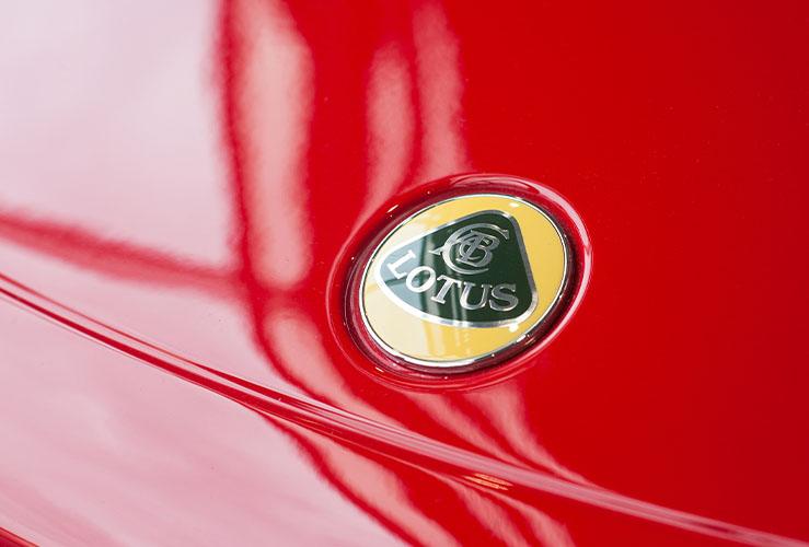 The Lotus logo is a yellow disc containing a rounded triangle in British racing green. Above the LOTUS lettering is a motif of four connected letters which stand for the firm's founder, Anthony Colin Bruce Chapman. However, rumour has it the Chapman's original partners, Micheal and Nigel Allen, were led to believe the letters stood for Colin Chapman and the Allen Brothers.